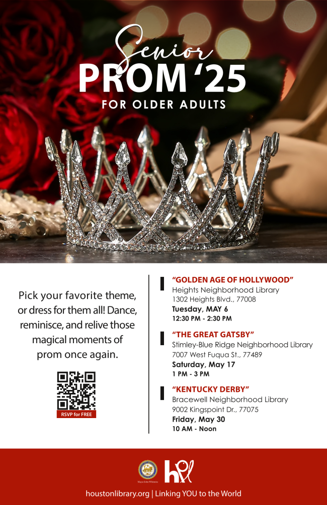 | Get ready to step back in time for a dazzling afternoon of music, dancing, and celebration! In honor of Older Americans Month, the Houston Public Library is rolling out the red carpet with a series of Senior Proms—and District K is joining the fun! 🎉 Theme: The Great Gatsby 📅 Saturday, May 17, 2025 🕐 1:00 PM – 3:00 PM 📍 Stimley-Blue Ridge Neighborhood Library 7007 W. Fuqua St., Missouri City, TX 77489 Whether you come dressed to the nines or just ready to dance, it’s sure to be an unforgettable afternoon filled with joy, laughter, and community spirit. Refreshments will be served, the music will be lively, and the memories—priceless. Don’t miss out on this golden opportunity to celebrate in style! 🎟️ RSVP or get more info here: https://ow.ly/BZWv50VB2js |