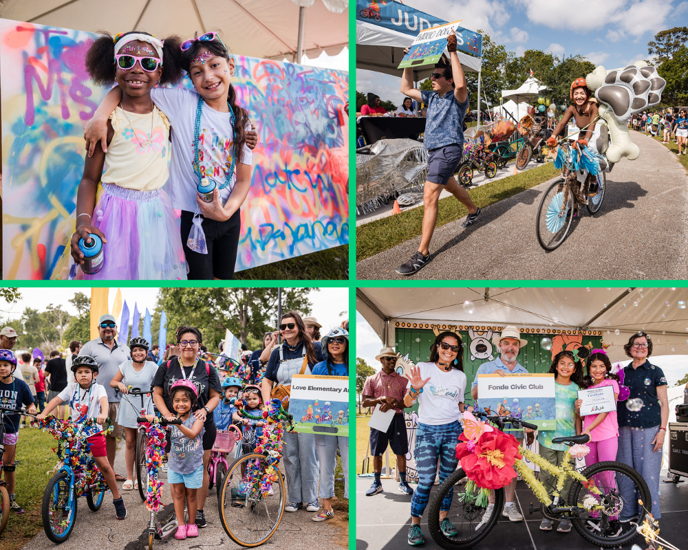 | What a day at Fonde Park for the 4th Annual Houston Art Bike Parade & Festival. Hosted by the Houston Parks Board and the Orange Show Center for Visionary Art, the event welcomed nearly 600 guests for an unforgettable afternoon of creativity, color, and community fun. More than 40 wildly imaginative art bikes rolled down the parade route—each one showcasing the artist in all of us. From bikes bursting with school spirit to clever sustainability themes, the talent on display was truly inspiring. A big shoutout to the amazing volunteers and vendors who helped bring this event to life—you are the heartbeat of what makes moments like this possible. 🎉 Congratulations to the 2025 Art Bike Award Winners! - You Call That School Spirit? – James Madison High School
