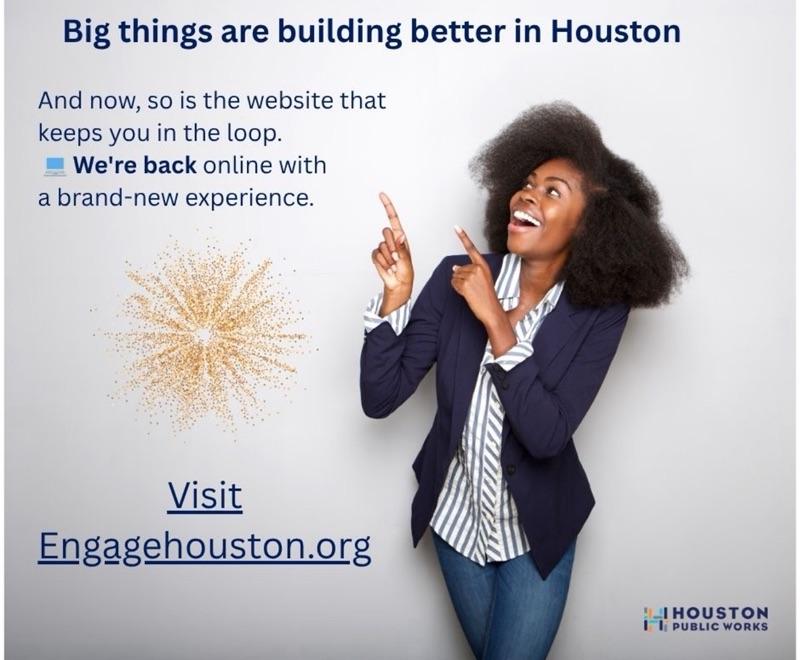 | Good news—the Engage Houston website is back up and running! If you’ve been waiting to catch up on city projects, community updates, or ways to get involved, now’s the time. Visit the site to stay informed and share your feedback on what’s happening across Houston. 🔗 Check it out here and stay connected! #EngageHouston #DistrictK #StayInformed #CommunityUpdates |