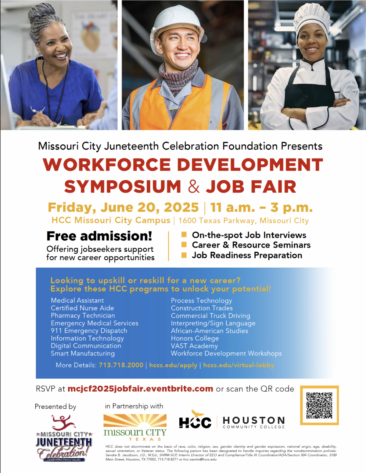 1600 Texas Parkway, Missouri City, TX Connect with employers, explore job opportunities, and gain insight from workforce development experts—all in one place. Open to the public and free to attend! #Juneteenth2025 #WorkforceDevelopment #JobFair #MissouriCity #CareerOpportunities |