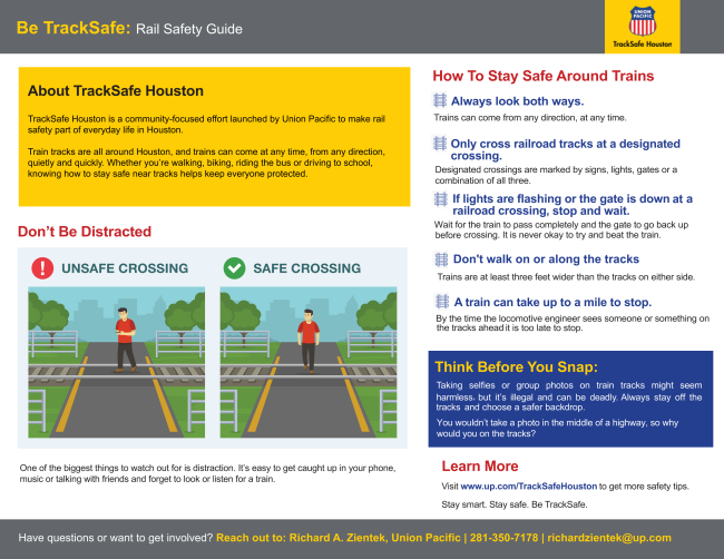 | Every year in Texas, far too many lives are lost in tragic accidents at highway rail crossings and along railroad tracks. In 2024 alone, more than 300 people were killed or injured in grade crossing crashes, and dozens more in pedestrian incidents on railroad property. These aren’t just numbers—they’re families, friends, and neighbors whose lives were forever changed. The reality is that these tragedies are preventable. Crashes between trains, vehicles, and pedestrians often happen because someone took a shortcut, ignored signals, or underestimated the speed of an oncoming train. A single moment of distraction can have lifelong consequences. That’s why Operation Lifesaver leads the charge in spreading the message: “See Tracks? Think Train!” It’s a reminder to all of us drivers, cyclists, and pedestrians to be alert and make safe choices near tracks and trains. From September 15–21, 2024, communities across Texas will come together to recognize See Tracks? Think Train!® Week. It’s an opportunity to raise awareness, start conversations, and most importantly, save lives. Let’s all commit to slowing down, paying attention, and encouraging others to do the same. Because when it comes to trains, safety is everyone’s responsibility. |