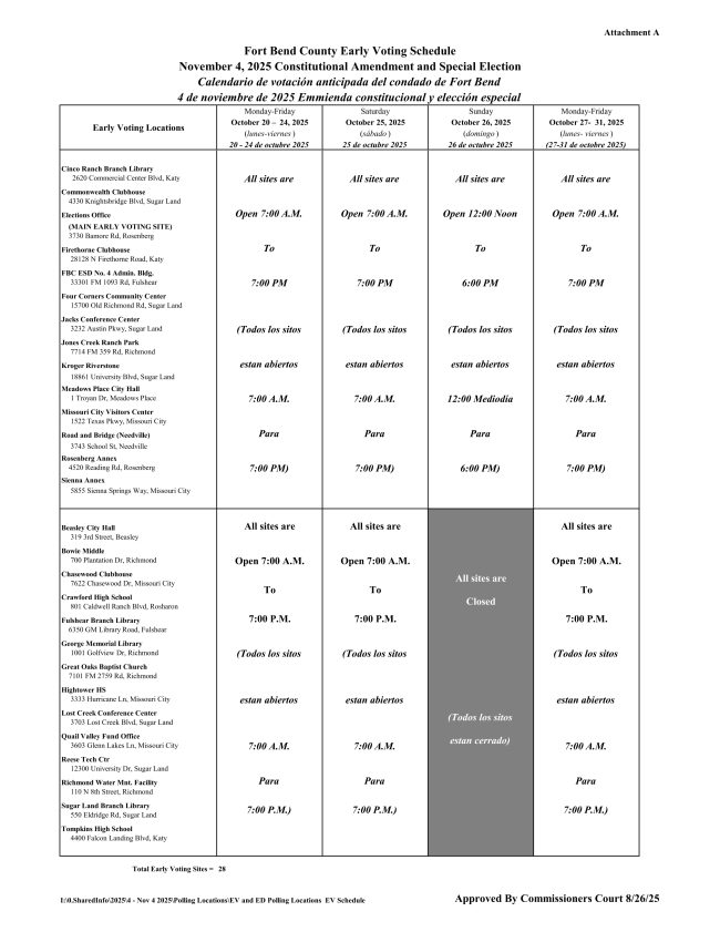 - October 20–31 – Early Voting (with weekend options)